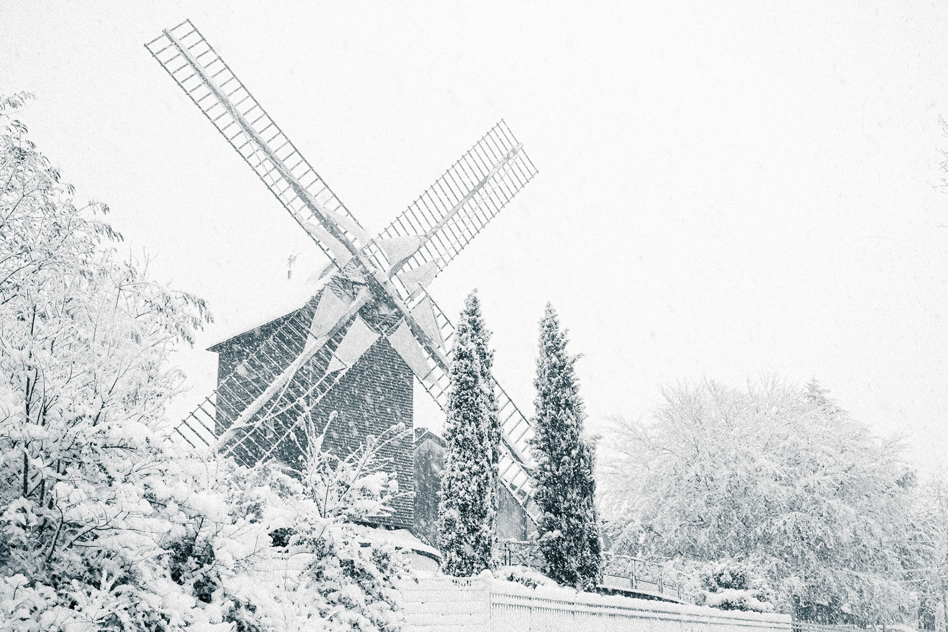 Arbre fleuri sous la neige